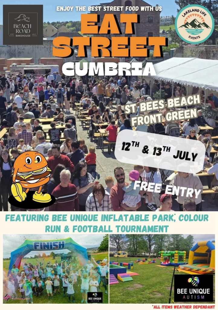 🧡 Join BEE UNIQUE and EAT STREET CUMBRIA by the sea for a laid-back, flavour-packed, bouncy family fun weekend in St Bees! 💛