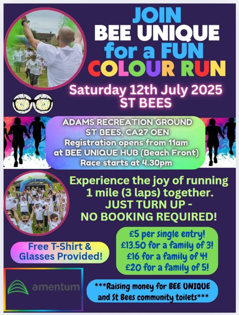 🎨 Location: The colour run will take place at the Adams Recreation Ground, St Bees! 🏃♀️