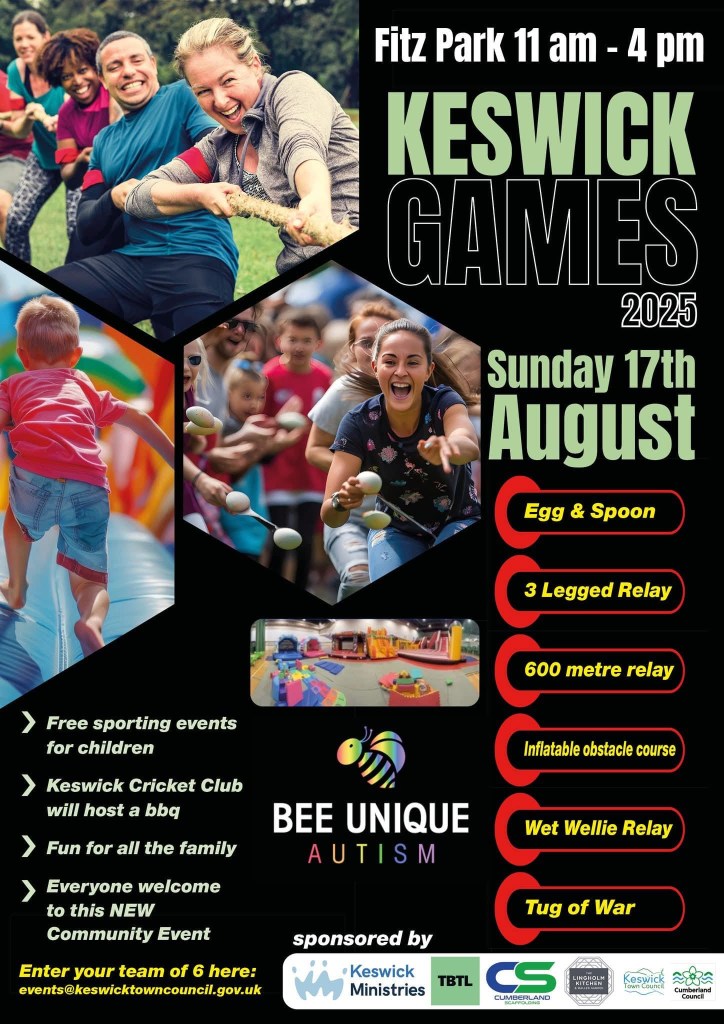 🐝 BEE UNIQUE are delighted to support the ‘KESWICK GAMES’ Family Fun Day organised by Keswick Town Council by bringing along an inflatable play area and activities for added fun.